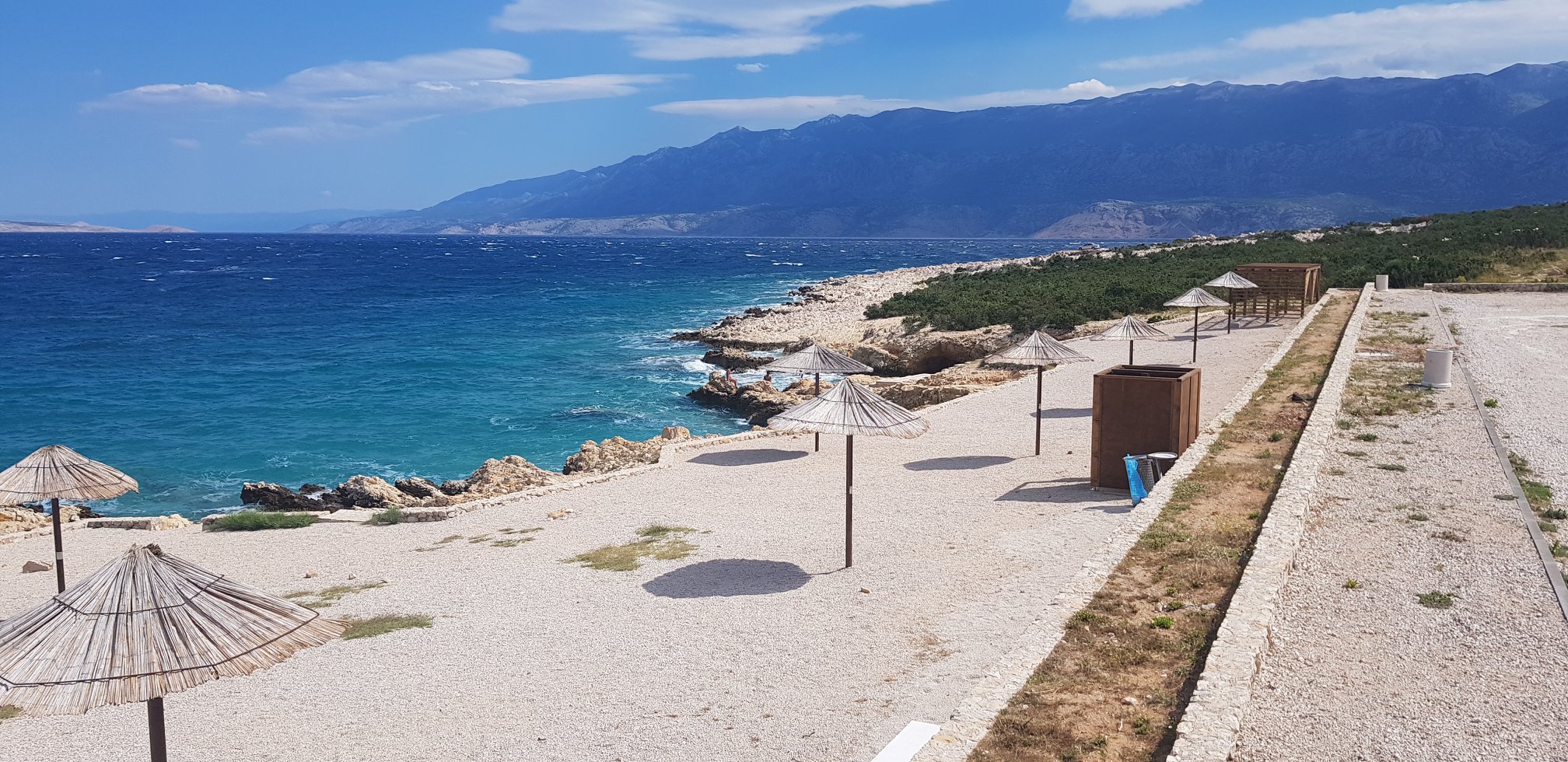 In a gentle cove on the northwestern part of the island of Pag, on a sheltered, sun-exposed, gentle slope, lies Stara Novalja with Planjka – Trinćel Beach. This beach attracts many tourists due to its cleanliness, beauty, appeal, and variety of facilities.